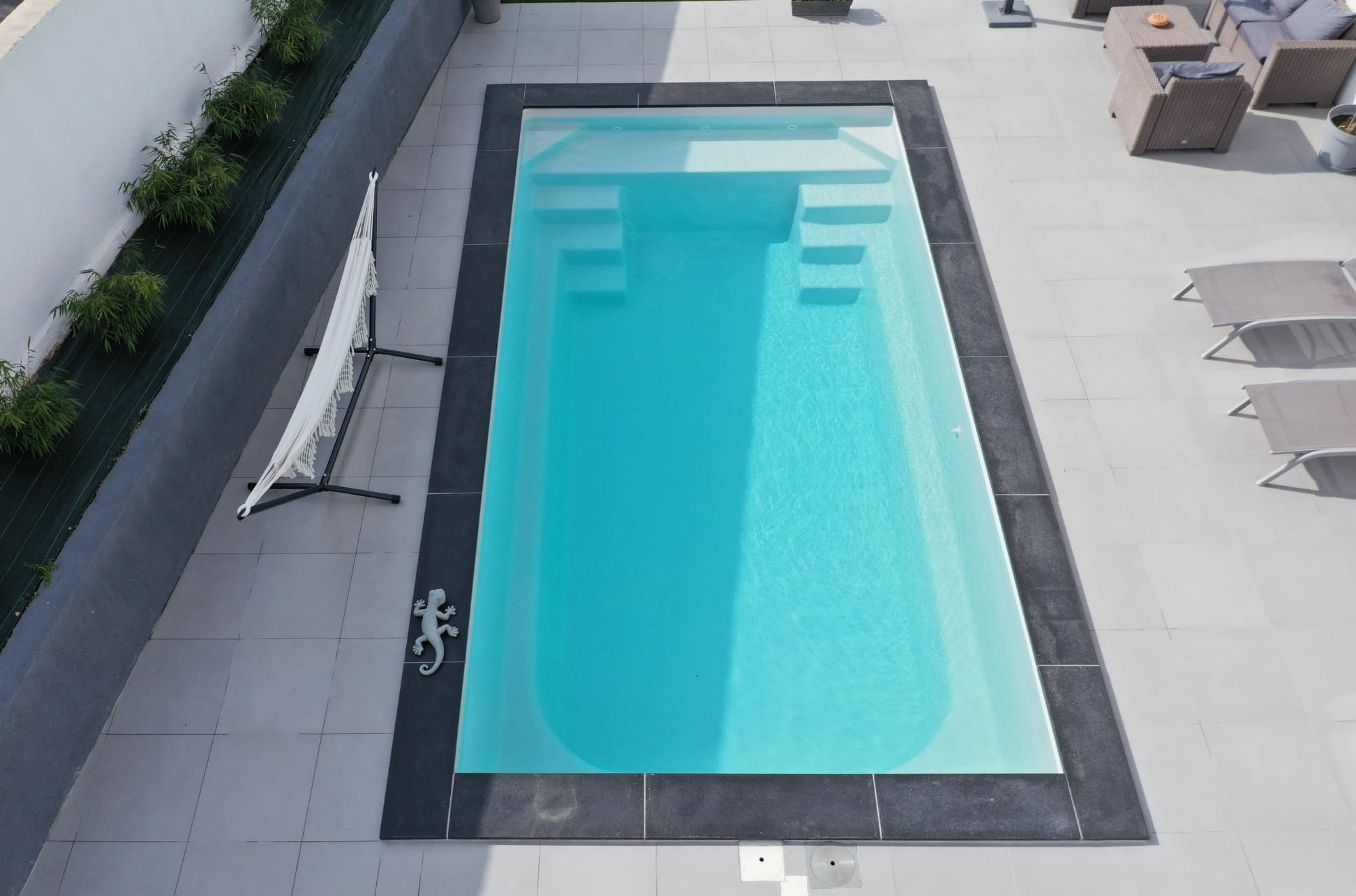 Imaginé en même temps que la piscine pour une parfaite harmonie, l’environnement du bassin est le dernier à être mis en place. Plage et margelles viennent compléter le bassin pour finaliser le projet et donner un aspect unique à ce nouvel espace à vivre.