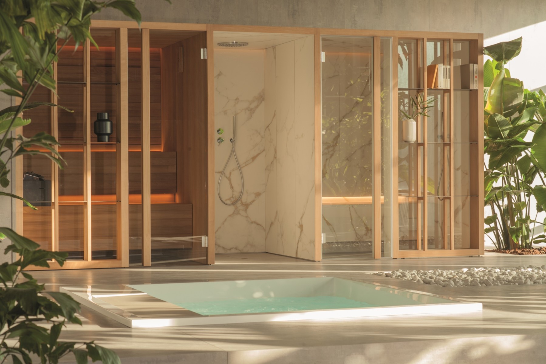 Le Yoku Spa combine sauna, bain turc et une grande douche centrale dans une solution unique. Toutes les fonctions d’un centre de bien-être complet, un véritable spa personnel qui vise à restituer l’expérience originale et authentique de ces pratiques anciennes dédiées au bien-être personnel. Trois solutions esthétiques différentes dans trois types de bois différents et deux types de grès rendent le projet ouvert à toute proposition de design.